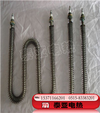 翅片式電熱管采用優(yōu)質(zhì)不銹鋼、改性氧化鏷粉、高電阻電熱合金絲、不銹鋼散熱片等材料,通過先進(jìn)的生產(chǎn)設(shè)備和工藝制作而成,并進(jìn)行了嚴(yán)格的質(zhì)量管理,該系列產(chǎn)品可以安裝在吹風(fēng)管道中或其它靜止、流動(dòng)空氣的加熱場合?!〕崞诫娂訜峁埽窃谄胀ㄔ砻胬p繞金屬散熱片,與普通元件相比散熱面積擴(kuò)大了2~3倍,即翅片元件所允許的表面功率負(fù)荷是普通元件的3~4倍。由于元件的長度縮短,使得本身的熱損失減小,在相同的功率條件下,具有升溫快、發(fā)熱均勻、散熱性能好、熱效率高、使用壽命長、加熱裝置體積小,成本低等優(yōu)點(diǎn)。根據(jù)用戶要求進(jìn)行了合理的設(shè)計(jì),便于安裝。 產(chǎn)品在機(jī)械制造、汽車、紡織、食品、家電等行業(yè),尤其在空調(diào)器風(fēng)幕行業(yè)得到廣泛應(yīng)用。