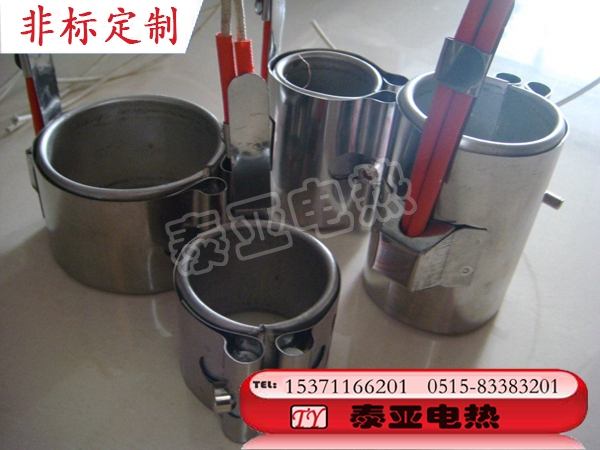 不銹鋼云母電加熱圈,雙包 單層都可以定制,提供內徑,高度 ,電壓功率,是否有特殊要求。