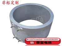 鑄鋁加熱圈鑄鋁加熱圈以管狀電熱元件為發(fā)熱體,彎曲成各種造型后,以鑄鋁進(jìn)入模具以離心澆鑄成圈型。成型后經(jīng)過(guò)精密加工,得到所需尺寸。它能和被加熱體緊密結(jié)合,起到升溫快、加熱均勻、熱導(dǎo)性能好、壽命長(zhǎng)等特點(diǎn)。該產(chǎn)品是國(guó)內(nèi)外比較理想的加熱器之一。鑄鋁加熱圈可根據(jù)需要配置循環(huán)冷卻水管,也可在內(nèi)外設(shè)計(jì)風(fēng)槽。